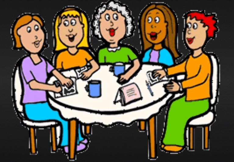 Either in person or virtually via Google Meet. We meet on the third Thursday of each month at 6:30 PM, in the staff lounge or from the comfort of your own home.