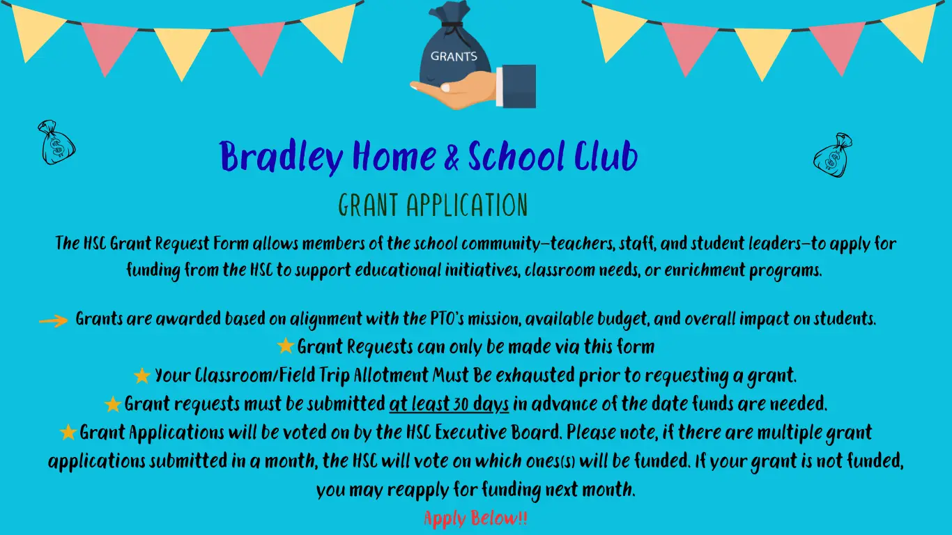 HSC Grant Application Please enable JavaScript in your browser to complete this form.Name *FirstLast Budget? project Email *Role TeacherStaffProject Title *What are you requesting funds for? Describe the project, materials, or initiative.How will this project benefit the students at Bradley? *Explain the educational or community impact. Who will benefit and how? Amount Requested *Provide a detailed budget or cost breakdown. Include links or quotes if available. Timeline *When will the funds be used? Include key dates for planning, purchasing, or implementationHave you exhausted your $1000 Classroom/Field Trip Budget? *YesNoN/APlease Note: If you have not exhausted your $1000 Classroom/Field Trip Budget, we will either deduct from that budget or direct you back to using that budget prior to asking for a grant request.Submit